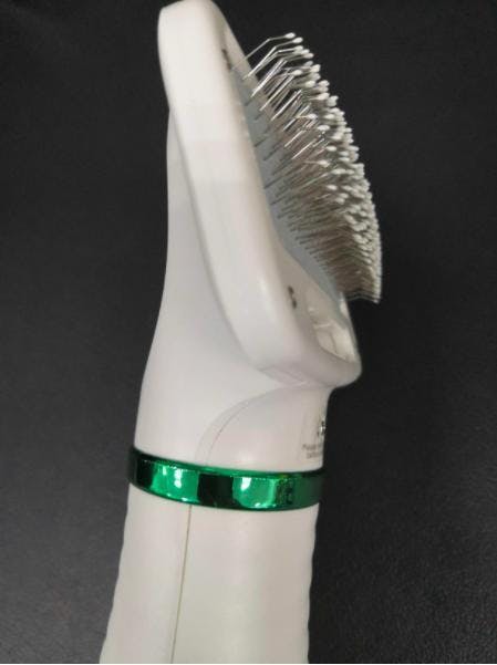 Secado rápido, silencioso y ordenado. Con una sola mano controlas el cepillo y el secador, mientras tu mascota disfruta.